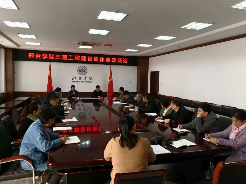 为落实党风廉政建设责任制,加强学校三期工程建设的管理和监督工作,提高重点岗位人员廉洁自律意识,不断增强拒腐防变的自律性、自觉性,11月8日上午,在主楼11层会议室召开了邢台学院三期工程建设集体廉政谈话会。校园建设三期工程工作小组组长、副校长刘永利主持会议,省监委驻邢台学院监察专员、纪委书记苏万通作重要讲话,校园建设三期工程工作小组成员参加了会议。